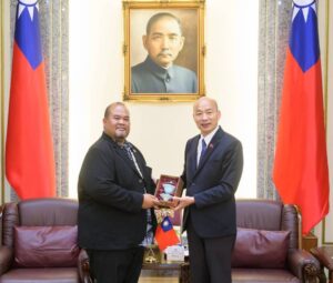 接見後,雙方進行午宴交流。席間,韓國瑜院長與友邦代表們圍繞台灣在天然災害韌性、公衛體系、資訊安全、AI創新、南島民族交流、農業科技、氣候變遷與綠能發展等議題深入討論,展現我國多元實力與全球視野。