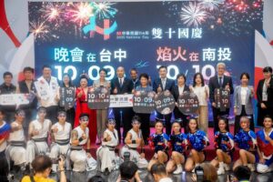 院長接續表示,今年國慶晚會最終會選擇在台中舉辦,是受到江副院長的大力推薦,也同時決定將焰火主辦,交付給同屬中台灣第一次迎接國慶焰火的南投縣。他隨後邀請身為台中子弟的江副院長為這次國慶記者會致詞。