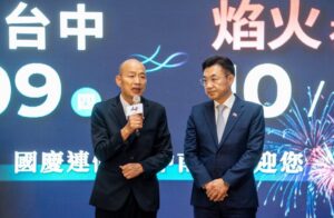 韓國瑜院長今(24)日下午前往台中市政府惠中樓大廳出席114年國慶晚會及國慶焰火聯合記者會,現場貴賓包含本院江啟臣副院長、楊瓊瓔委員、馬文君委員、游顥委員、麥玉珍委員、台中市盧秀燕市長、南投縣許淑華縣長、僑務委員會李妍慧副委員長、國慶籌備委員會吳堂安秘書長、台中市及南投縣在地議員、市府團隊及贊助合作廠商等貴賓共襄盛會。