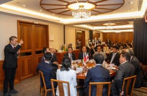 餐宴開始時,「臺日交流聯誼會」副會長洪孟楷委員特別代表祝酒,洪委員表示,韓院長選在臺灣知名的餐廳款待日本貴賓,寓意深遠。「鼎」象徵第一,祝福各位議員高票連任;「泰」代表健康安泰、處事從容;「豐」則寓意豐收與成果豐碩,期盼訪團此行滿載而歸。