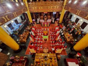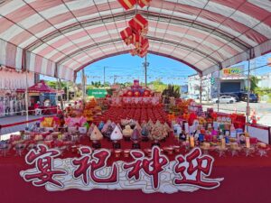 今逢入火安座五載之運期,奉 天上聖母 四媽祖聖示建醮,藉由醮典科儀:禮天酬恩、迎神護鑒、化刼消災、萬事吉昌。迎奉諸天聖神仙佛,百餘尊神尊駕臨鑒佑扶助,可以禆益廟宇光輝、安定四境、聖業丕開、磬基鞏固。