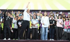 護國院長蘇貞昌壓軸一登場,全場歡聲雷動。他強調,不能讓高雄再次落入國民黨手中,「要選就選會戰的!」並笑說邱議瑩服務範圍橫跨高雄七成土地,「陳其邁做市長,邱議瑩做了七成!」