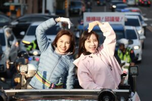 邱議瑩一早從「本命區」美濃出發,下午3點半車隊抵達鼓山、鹽埕,並與黃捷在哈瑪星代天宮會合。車隊一到場,現場民眾高喊「邱議瑩凍蒜!」,不僅揮手歡呼,更主動上前擁抱打氣,哈瑪星協會理事長也到場力挺,氣氛熱絡。
