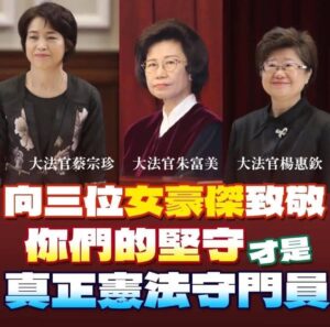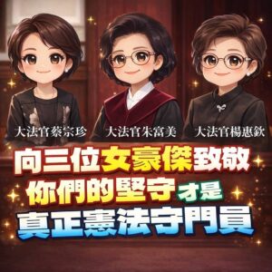 我們公開聲援朱富美、楊惠欽、蔡宗珍三位大法官。
