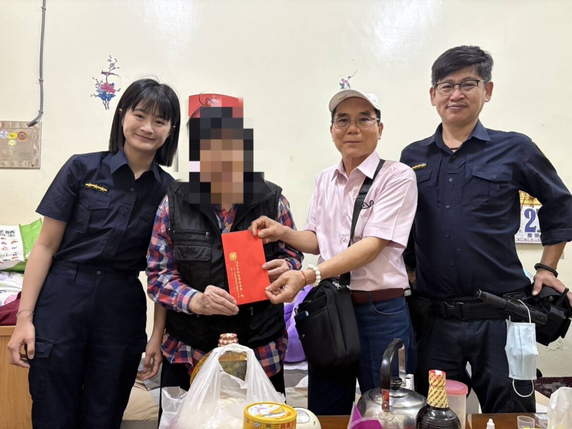 警方利用勤區查察進入轄區探訪及入戶反詐騙等犯罪預防宣導時,發現轄內林姓老嫗(32年次)為獨居老人,目前生活困苦,且有輕微失智,員警主動聯繫慈懷慈善會總幹事劉建成捐贈白米、麵條、醬油、罐頭等物資及慰問紅包新台幣3800元,民眾對警方關懷之舉,表示感激。