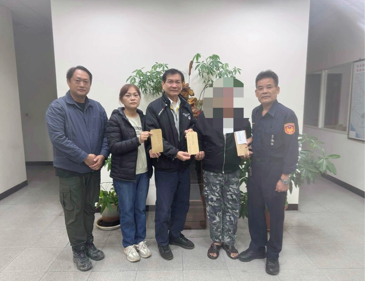 藍所長聽聞後心生憐憫,自掏腰包及協調民間善心人士戴昆財、戴奎浚、蘇清波、許展榮、張龍欽、陳清祥、黃慶春、林俊豪、邱采慧、洪勝全、陳慧琴、蔡宗佑、蔡家揚、蔡珮涵、江宏偉、黃大洲、詹光榮、吳倧纑、鍾進文、郭雅謙、藍怡芬、藍一宸、藍一軒、陳柏融、陳禹銓、夏苡明、大庄巡守隊,以及民間團體陳柏宏、潘睿典、卿友慈善團等各界人士熱烈響應,共募得新臺幣 8萬5,700元。並於東海派出所內親將善款交付家屬,期盼透過這份溫暖的心意,暫時紓解其燃眉之急,協助其渡過人生難關。