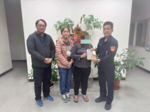 藍所長聽聞後心生憐憫,自掏腰包及協調民間善心人士戴昆財、戴奎浚、蘇清波、許展榮、張龍欽、陳清祥、黃慶春、林俊豪、邱采慧、洪勝全、陳慧琴、蔡宗佑、蔡家揚、蔡珮涵、江宏偉、黃大洲、詹光榮、吳倧纑、鍾進文、郭雅謙、藍怡芬、藍一宸、藍一軒、陳柏融、陳禹銓、夏苡明、大庄巡守隊及民間善心團體陳柏宏、潘睿典等人,共同捐款新臺幣2萬8,000元。並於東海派出所內親將善款交付家屬,盼微薄之善款可以暫解燃眉之急,冀望能順利渡過眼前難關。