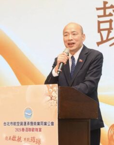 韓國瑜院長今(26)日晚間於台北花園酒店出席台北市航空貨運承攬商業同業公會春酒聯歡晚宴,現場貴賓包含羅文祥理事長伉儷、本院羅智強委員、台北市張溫德副市長、台北市議會葉林傳副議長、桃園市議會彭俊豪議員、台北市社會局姚淑文局長、桃園市經濟發展局張誠局長、財政部關務署趙台安副署長、台北關黃漢銘關務長、基隆關張世棟關務長、交通部航政司韓振華司長、內政部警政署航空警察局李家豪大隊長、台北市報關商業同業公會高振明理事長、台北市航空貨運承攬商業同業公會及報關商業同業公會從業人員等。