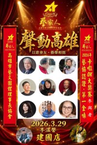 高雄市藝文團體理事長協會日前舉辦第十一屆第二次會員大會,並結合「2026卡拉OK大獎賽」,活動現場嘉賓雲集,包括顧問詹獻坤(阿卜極)、顧問李新、顧問葉茂青、顧問曾人口,以及榮譽主席蔡嘉琛、輔導主席吳智通等蒞臨指導,另有曾協助高雄市立美術館《迎春藝彩堂》活動之協辦友會代表到場共襄盛舉,場面熱絡。