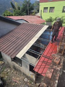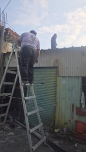 屋頂破損的石棉瓦,擋不住傾盆大雨,