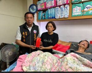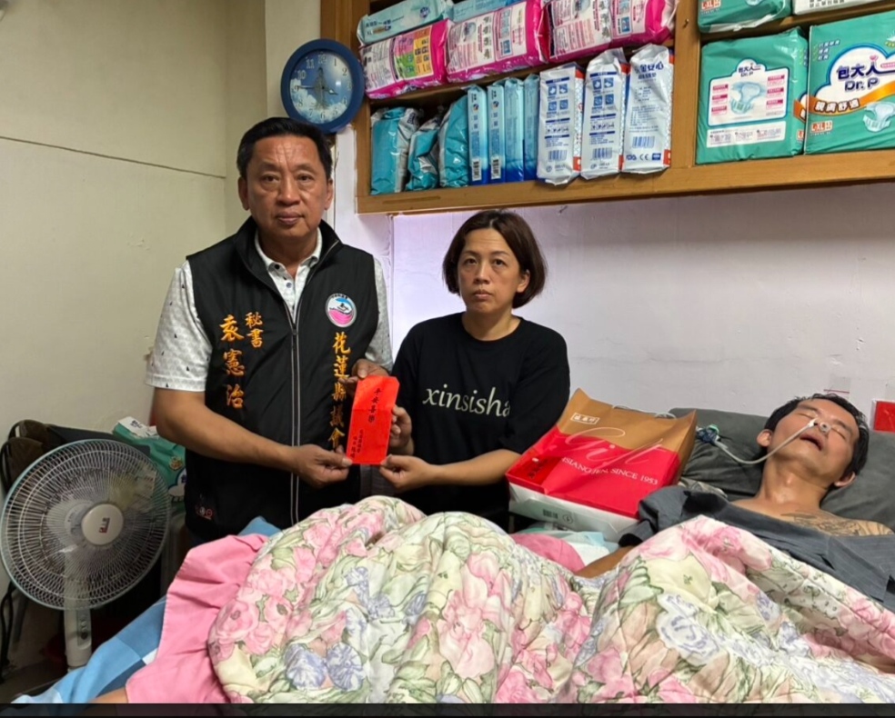 袁憲治秘書親自到府關懷,並代表張峻議長致贈慰問金及禮盒,祝福巫先生早日康復。同時,現場亦主動聯繫花蓮榮民之家游主任,諮詢後續安養事宜。