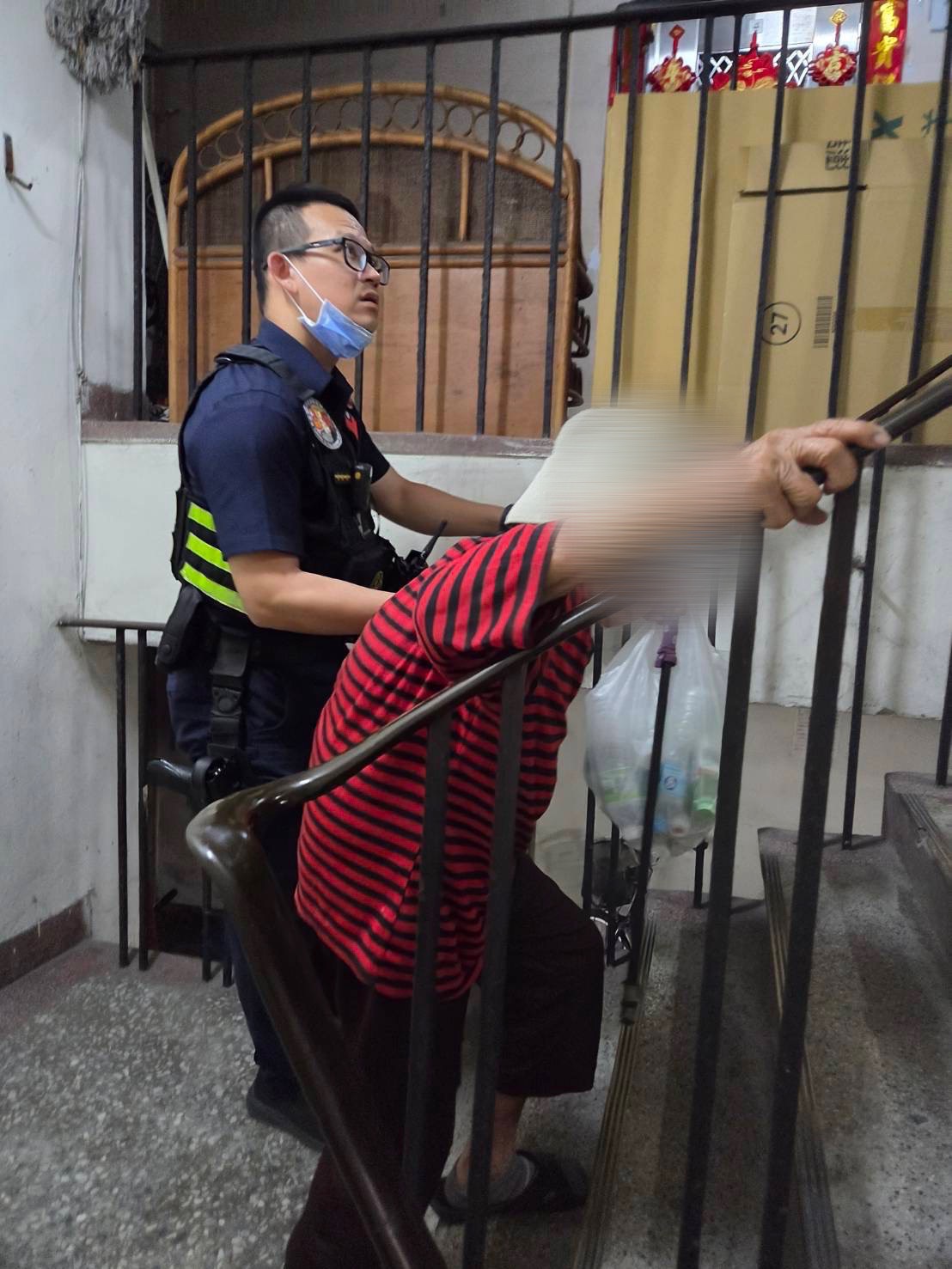 警方將婦人帶返住家後,發現住處位在公寓三樓,擔心婦人行走樓梯時會跌倒,便攙扶著婦人上樓返家,家屬事後得知員警的暖心行為表示非常感謝。